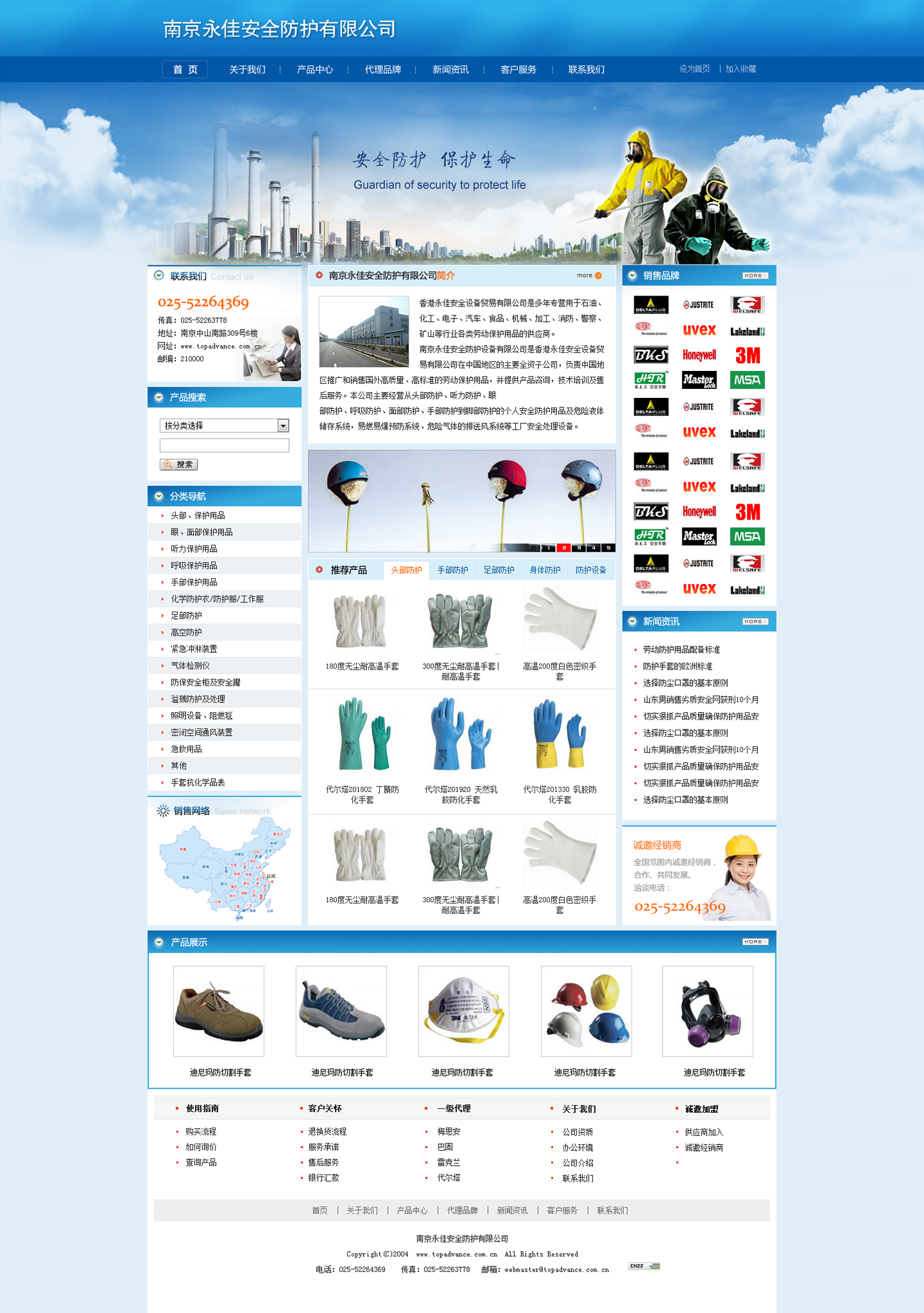南京永佳公司主要經(jīng)營(yíng):頭部防護(hù),聽(tīng)力防護(hù),眼部防護(hù),呼吸防護(hù), 軀體防護(hù),手部防護(hù)到腳部防護(hù)的個(gè)人安全防護(hù)用品及危險(xiǎn)液體儲(chǔ)存系統(tǒng),易燃易爆品預(yù)防系統(tǒng),危險(xiǎn)氣體的檢測(cè)和工廠環(huán)境安全儀器設(shè)備。并提供產(chǎn)品咨詢(xún),技術(shù)培訓(xùn)及售后服務(wù)。